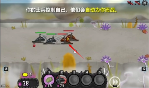 2、你的士兵会自动进行战斗,你只需要放置士兵即可。