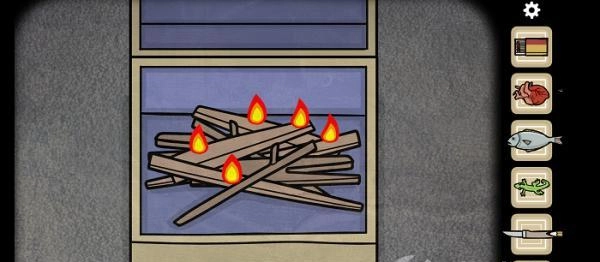 8、点击热气球,打开旋钮,用火柴点燃。热气球开始上升。用小刀割断沙袋,热气球飞走。