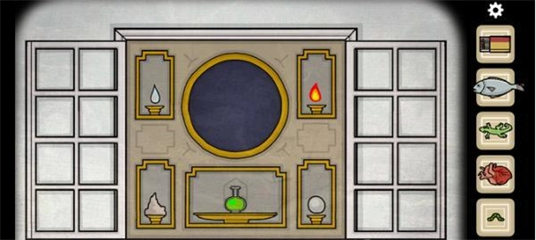 14、来到祭坛,摆放好四只螺壳,放上心脏,即可穿梭回正常的房间。