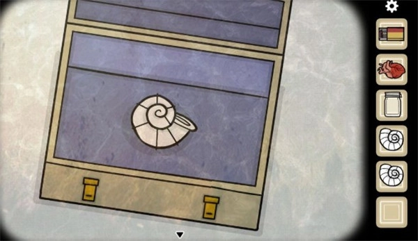 12、来到柜子这边,在蓝色内衬的盒子里找到第三枚螺壳。