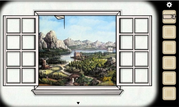 5、来到窗户这边,外面的景色明眼人都能看出是一幅画,上边画着锈湖根源旁边还有一只壁虎,只会在房间里乱爬,不用管它暂时。