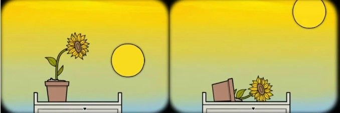 10、向右转,把沙子放进花盆,再放进向日葵。向日葵会跟着太阳动。移动太阳把花盆弄倒,可以得到葵花籽。