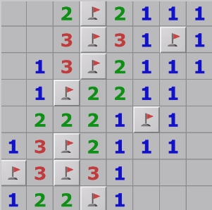 点击数字:在数字和周围八个格子中标记的雷数相等时,会点开其它格子。