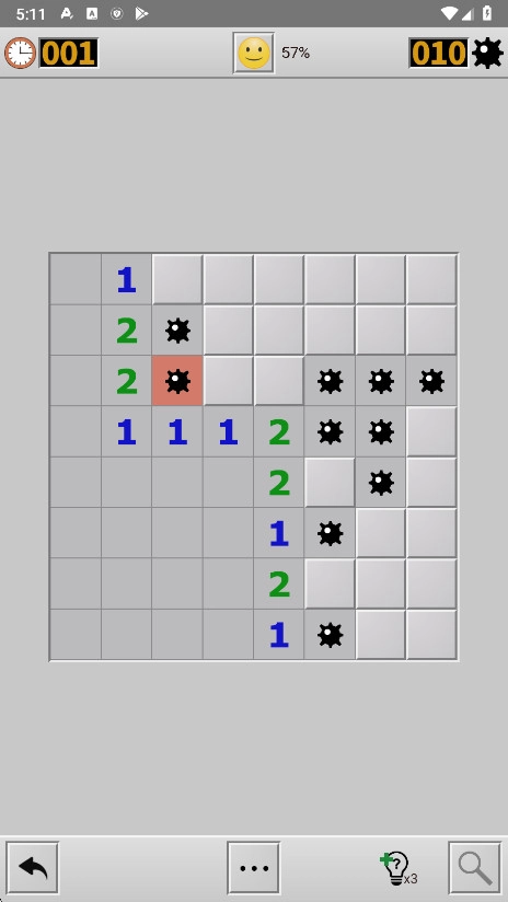 2、我们根据这些数字找出哪些格子是雷,哪些不是雷。点开所有无雷的格子,游戏胜利,如果点中雷,那么游戏就会失败。