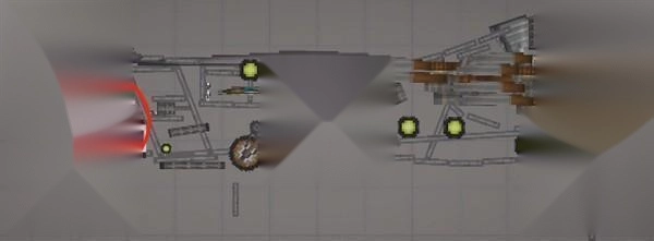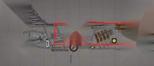 3、需要注意的是,这种不稳定的结构一定要加上支柱,即机头中间的长铁块,调成无重力不碰撞,链接到机头外壳即可