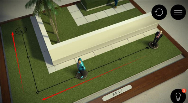 1-5:先移动到石头位置,然后把石头投到上方箭头位置即可;然后按线路到达终点即可;