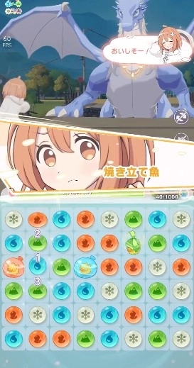 5、战斗系统采用简单的消除玩法,玩家选定角色后在下方区域进行三消操作。