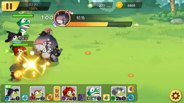 4、在战斗中,玩家可召唤更多蛙蛙成员加入战线,不同类型具备独特能力,合理部署是关键。