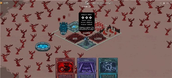 2、界面底部提供多种功能卡牌,每张卡牌代表不同建筑与策略选择,例如铁匠铺可提升武器等级,侦查塔则能扩大视野范围,预判敌军动向。