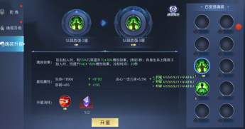 2星或以上的魂装还可以进行升星,升星需要消耗2星魂装和影魂精魄进行提升,建议玩家把多余的1星魂装分解,2星魂装用来进行升星,升星可以大幅提升魂装属性!
