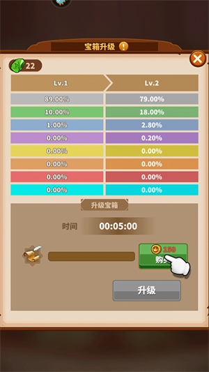 5、获得的奖励可以用来提升宝箱等级,宝箱等级越高开出珍稀装备的概率也会越高