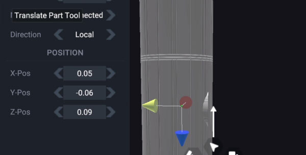 5、接下来用平移工具把燃烧适配器向火箭主体平移,直到看不见油箱,这样一个无限燃料小火箭就做好了。