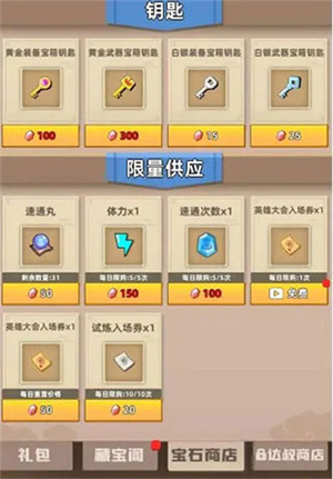 宝石能够用来购买诸如速通丸、体力、速通次数、英雄大会券、试炼入场券等每日限量的道具。速通丸能助力少侠迅速通关关卡,收获大量金币;体力可用于修炼处的“领悟”,借此获取金币、悟性、内力等资源;试炼入场券则能增加试炼次数,从而得到心仪的试炼资源。各位少侠可按需选购,新手购买这些道具,性价比颇高。只有将宝石用在关键之处,方能实现利益最大化。