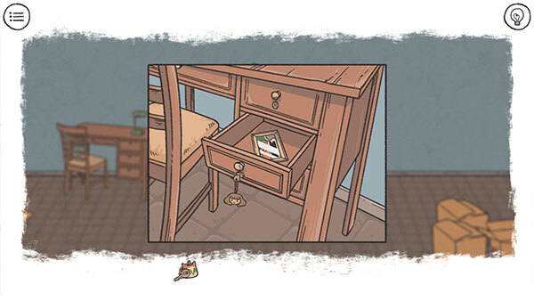 3.用【猫头鹰钥匙】打开桌子抽屉,获得【美工刀】。用【美工刀】划开箱子的胶布,获得【羽毛】。打开门,进入新场景。
