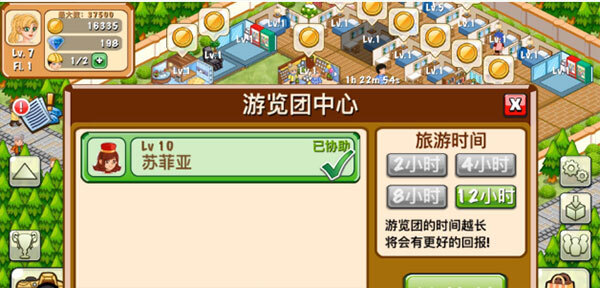 3、游览团。我们可以利用游览团来赚取大量金币,而且*好把旅游时间设置成12小时,因为这样我们收获的金币会比2小时4小时的多很多哦!