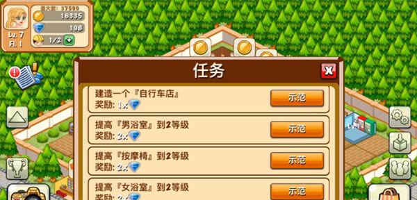 游客量的增加气势还要通过做任务来完成。大家都知道在游戏中任务分为建筑任务和投资任务。建筑任务主要是让玩家来完成一些建筑的建造和升级。