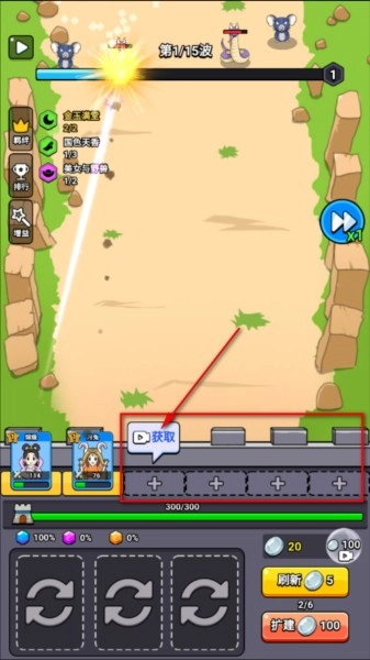 5、点击【刷新】来不断刷新角色,选择自己需要的角色上阵,相同角色再次选择会进行升级,最高可以升到5级满级。