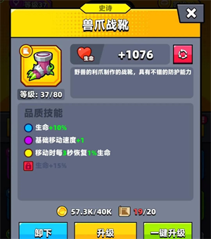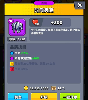 金色品质:一旦装备品质升至金色,便会激活品质技能。每成功击败两百只怪物,就能恢复自身5%的生命值。此时,结合装备与补给技能所赋予的高额血量,恢复效果将得到显著提升。