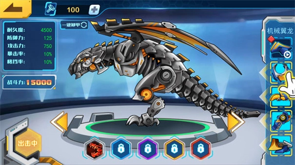1、【机甲升级】:升级你的机甲,提高其战斗能力和速度,并购买更强大的武器准备对抗更强大的恐龙。