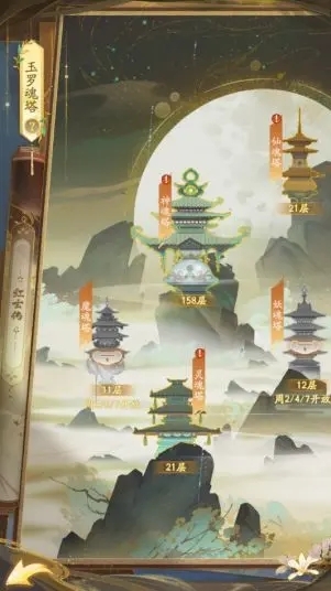 四族塔(妖):妖魂塔具体层数尚不明确,截至目前,小编仅体验至约20层。妖魂塔于每周周二、周四、周日开放,挑战时仅能使用妖族英雄。每当成功通过10层,即可领取系统奖励的仙玉碎片;而且每闯过一关,都能收获大量的灵石与念,它是游戏内获取资源的主要途径。
