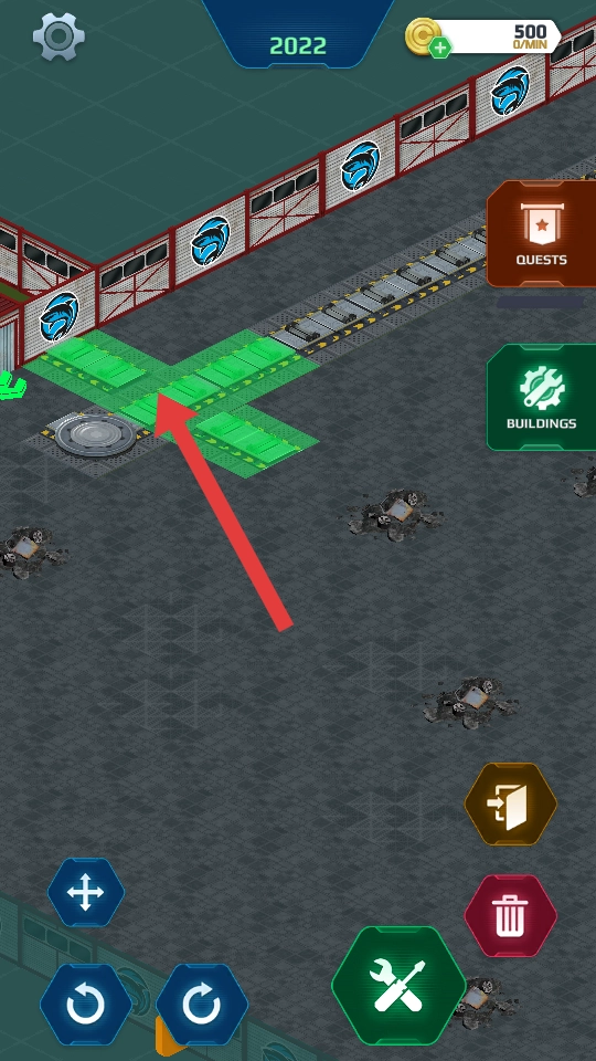 2、点击箭头所指的绿色的区域,可以进行将区域相关的建设或功能激活,拓展厂区的建设的布局。