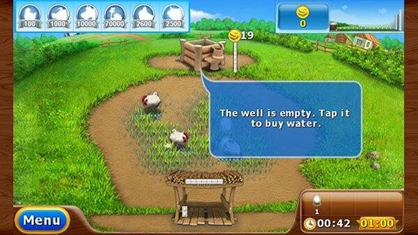 得到2个鸡蛋就赶紧用小车买掉,这样才可以买第三只鸡。都是教学关很简单。