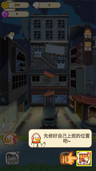1、进入夜市第一步,当然是修好我们上班的地方了,所以请大家先选择建造吧。