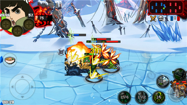 2、在打斗过程中,双方都会派出小兵,消灭小兵能够获得金币。与此同时,击杀英雄人物可得到较多金币,这些金币可用于购买屏幕左方的食物,进而恢复血量。游戏结束时会进行结算,依据场上的表现给予一定奖励。