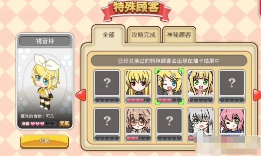 在兑换特殊顾客之前,我们需要和她互动一段时间,来博取他们的好感度。博取好感度的方法可以通过煮他们喜欢吃的料理来实现,也可以给他们送礼物。