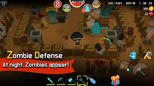 在游戏里,玩家需在各处探索,寻觅矿石、木材、水源、食物之类的资源,既要确保自身存活,又得打造各类武器与工具,提升整体探索效率。不仅如此,玩家还得搭建自己的营地,构建完善的防御设施,抵御如僵尸、动物等危险,以便能更长久地生存下去!