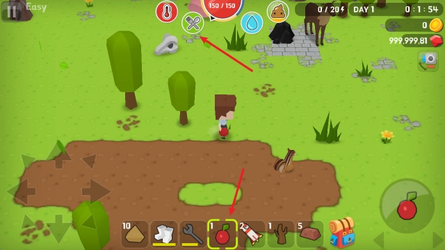 6、在上方能够看到自身的各类状态值,需及时寻觅食物与水源以作补充。
