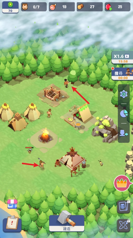 3、当拥有充足的资源后,我们便能够着手建造各类建筑。像帐篷能够使人口得以增加,伐木场则能够提升伐木效率,诸如此类。