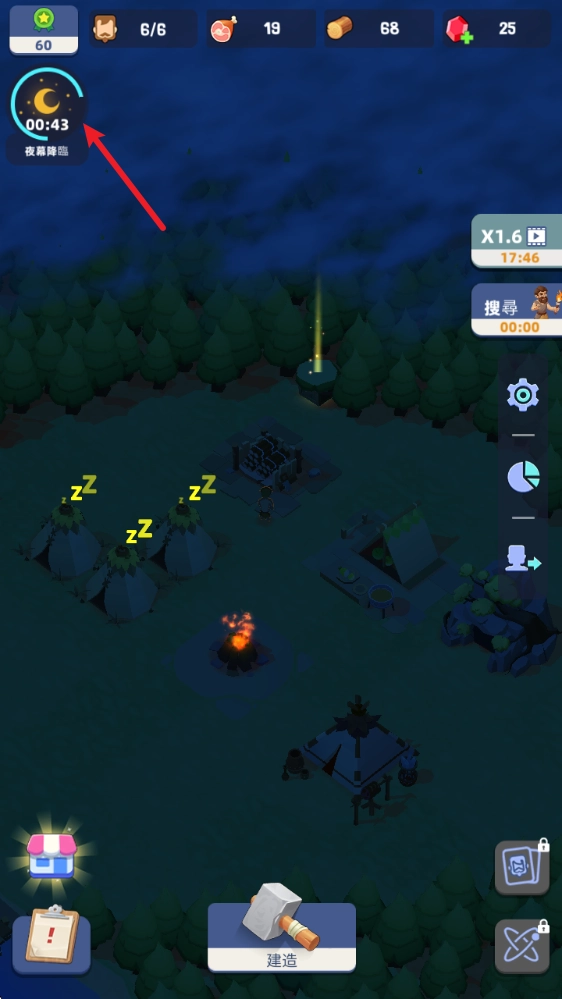 5、游戏中存在日夜交替的设定,当夜幕降临后,屏幕左侧会展示剩余的夜晚时长。