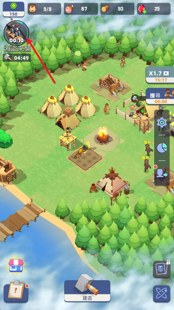7、一旦左上角出现海盗图标,就意味着他们马上要登岛发动攻击。