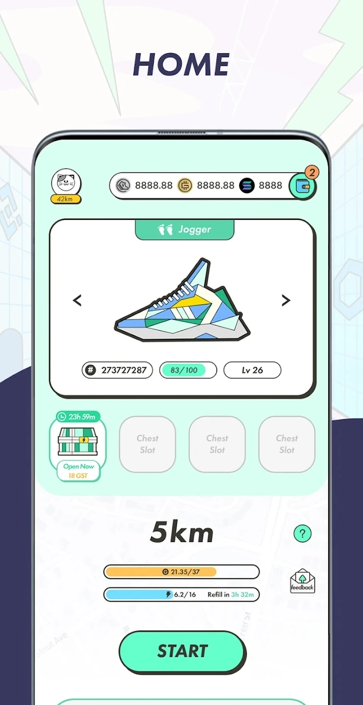 3、比如快跑鞋的配速是9-15KM/H,必须通过快跑才能达到产币效能最大化。而走路鞋就更适合喜欢散步的轻运动玩家及老年人。