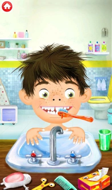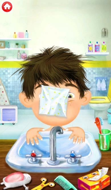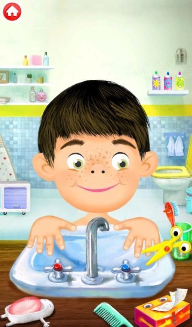 该应用程序包含两个部分,在可爱角色佩皮进行男孩或女孩的选择后,会出现不同的场景:在水槽边以及洗衣服的场景。