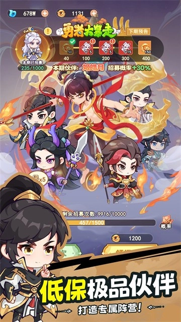 《勇者大暴走》是一款主打修仙题材的卡牌冒险类游戏。在游戏里,玩家将穿梭至破碎后又重新组合的洪荒世界,开启修仙养成之旅以及冒险战斗征程。在这里,玩家能与幻化成人类模样的上古神兽,还有觉醒器灵的洪荒至宝携手作战。而且,玩家仅需通过简单的召唤操作,就能获取形形色色的英雄角色,进而组建起实力强劲的作战小队。只要维持基本的战力养成,便足以完美应对所有挑战,面对复杂的主线关卡与任务,也能轻松化解,根本无需耗费过多精力去安排。合理分配并利用法宝装备,使之形成强大的套装,以此获得属性加成,还有机会触发特殊的技能增益效果,从而实现全方位的基础战力强化,如此一来,便完全能够应对更多的首领。