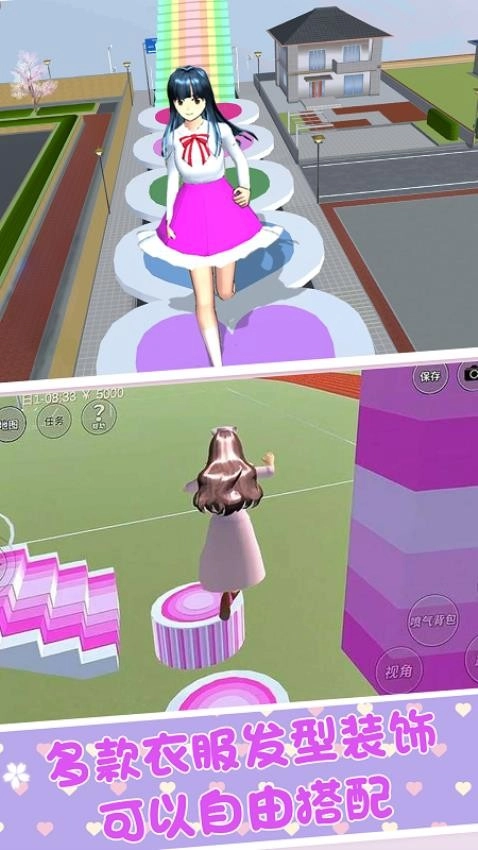 游戏采用了樱花校园这样的题材,能够在场景中看到十分美丽的景色。
