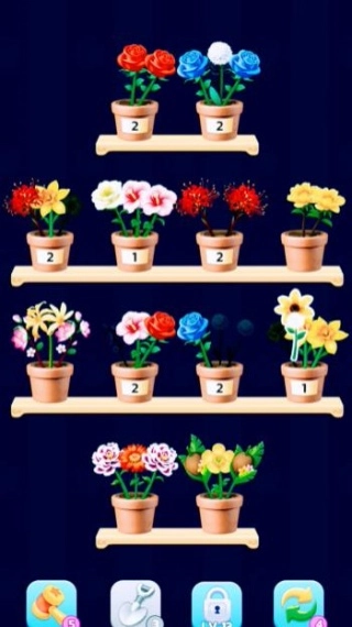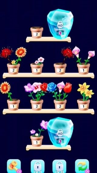 游戏主打轻松的节奏与柔和的画面,能让你在闲暇之际收获治愈与放松。玩法简洁却不乏策略性,你要在棋盘上寻觅并匹配相同的花朵,通过消除它们来清空棋盘从而通关。花朵或许会层层堆叠,分布在不同位置,这十分考验玩家的观察与规划能力。关卡不存在时间限制,你能够依照自己的节奏从容思考,搭配上精美的画面与舒缓的背景音乐,尽情体验一场视觉与听觉的双重盛宴。