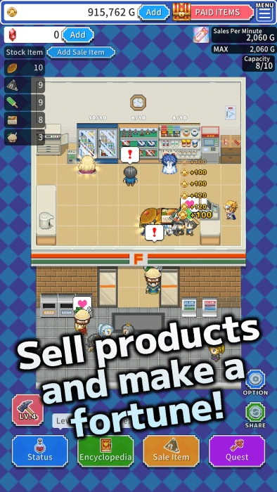 超商勇者游戏,英文名Convenience Hero,这是一款融合了经营与冒险打怪元素的放置类游戏。在游戏里,玩家身处异世界,开设了一家超市。你不仅要获取更多商品,以此吸引顾客前来购买,还要开启冒险之旅,打败那些妄图偷盗的怪物。快来这里开启经营之路,尽情享受游戏带来的乐趣吧!