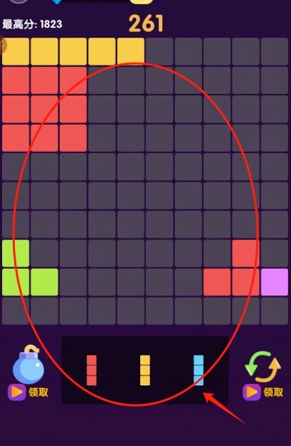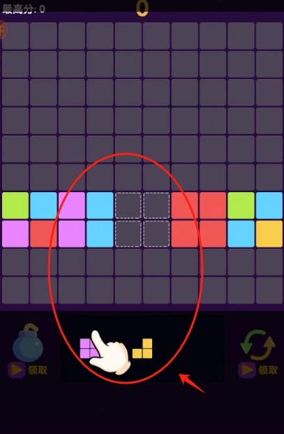 1、开始游戏,拖拽方块填满棋盘,一次消除整行整列的感觉超解压.
