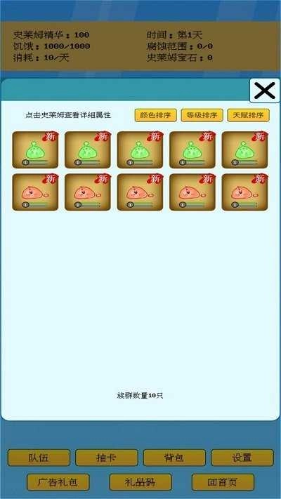 1. 卡牌收集:基础史莱姆具备20种初始形态,稀有种类携带着特殊技能,传说级别能够解锁全屏大招。