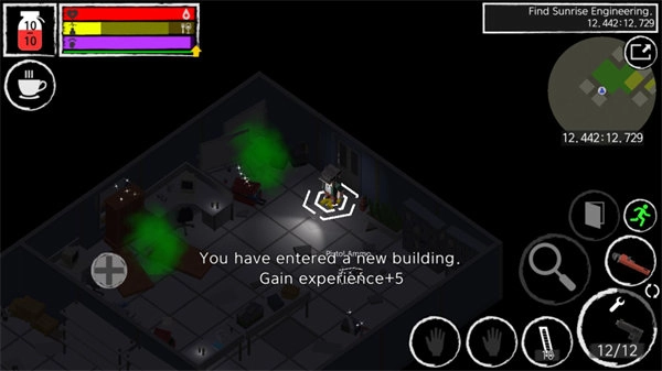 4、遇到带有黄色地标的房屋时可以进入探索,这些房间里有各种资源等你去收集。