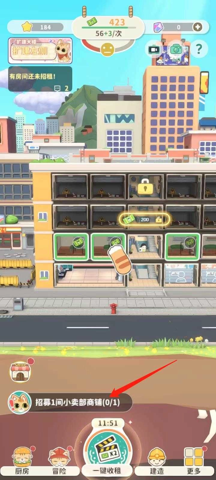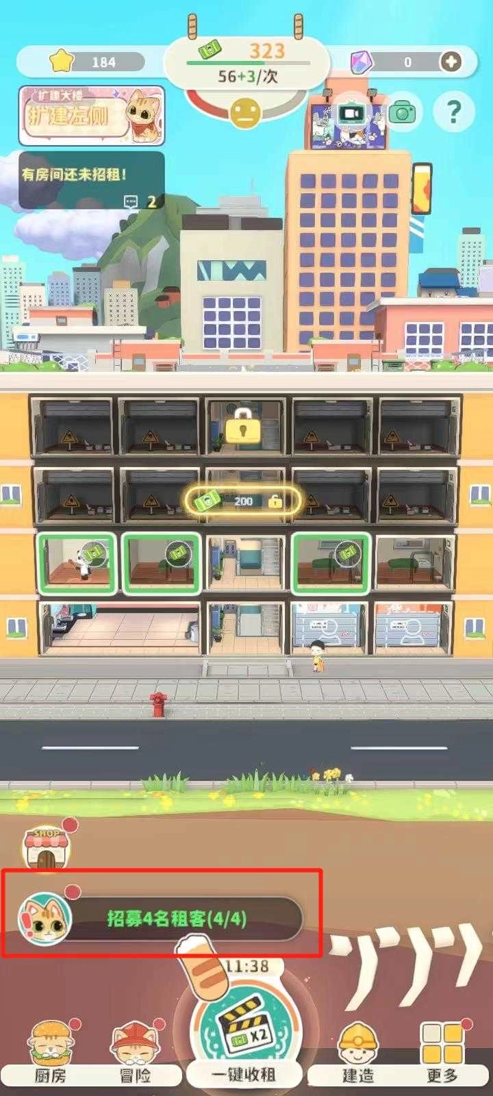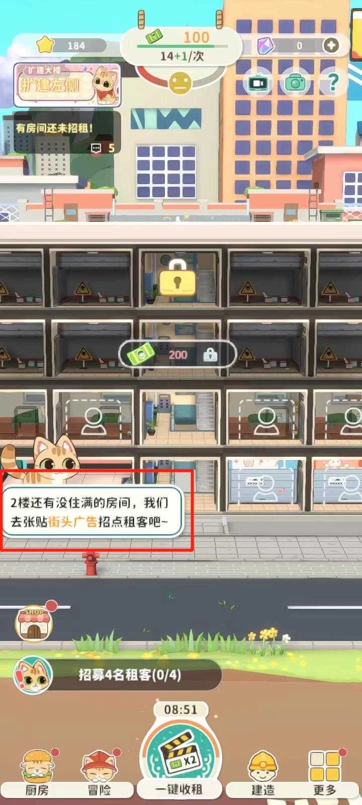5、点击下方这个位置去张贴街头广告招点租客,并招募4名租客;