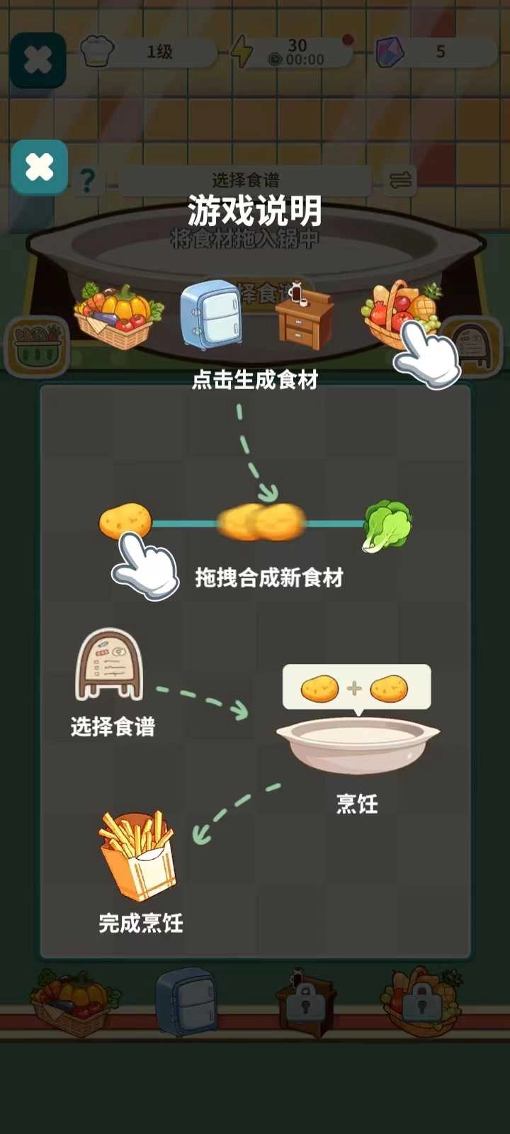 8、玩家还可以点击下方功能栏的【厨房】,进入以后也有一段游戏说明,玩家可以仔细查看;