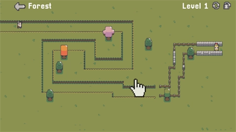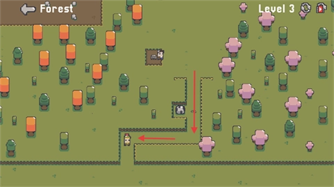 3、到【Level3】,移动至箭头指向的棕色区域触发机关将方框内石头进行移动,保持道路通畅。