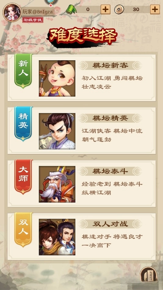 象棋游戏趣味十足,但难度可不低,想成为象棋大师就得勤加练习。游戏有单机和联网两种模式,既能和电脑对战提升棋艺,也能钻研残局,感兴趣的朋友不妨试试。