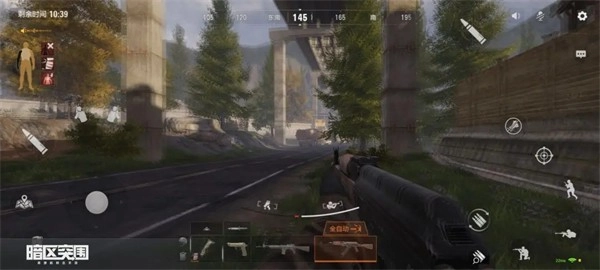 这里教大家一个小技巧,暗区突围在腰射状态下是没有准星的,但是我们可以将打开设置界面的齿轮按键放到屏幕正中心,调整大小和透明度,让它变成一个"准星”,当然这个准星只能作为参考,比如可以先通过它预瞄目标再开镜,提升索敌效率,腰射时也可以作为参照物。