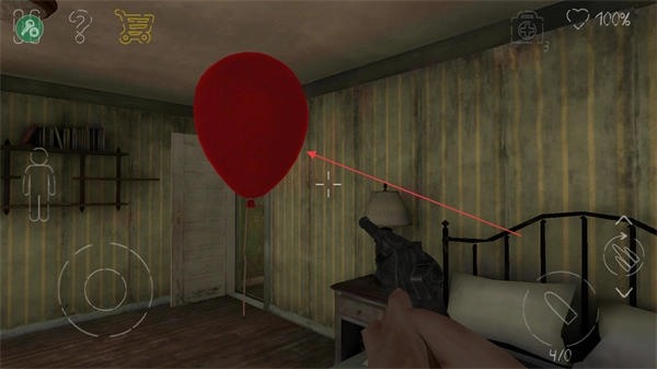 4、使用获取的道具如弹弓攻击场景中的红色气球,推进解谜流程。