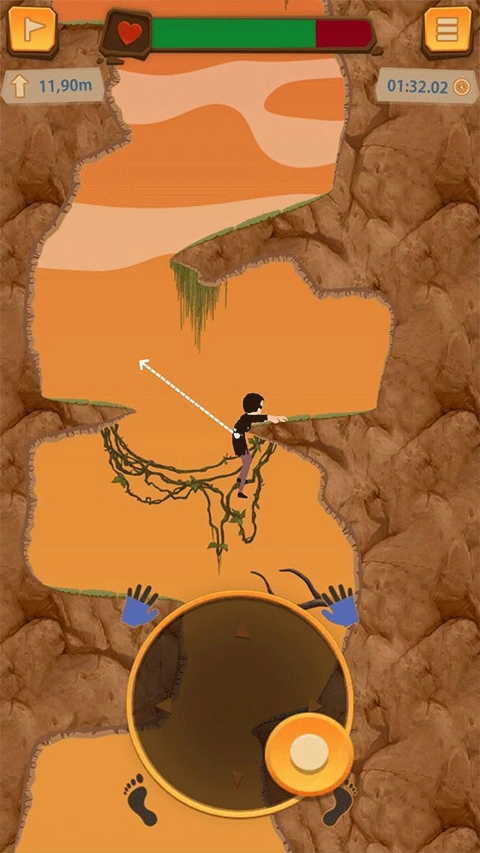 你印象中的爬山,大概是顺着台阶一路登顶,既能在挥汗中锤炼意志,又能慢悠悠欣赏沿途风光;但在这里,爬山会彻底颠覆你的固有认知——靠跳跃!得用手或脚紧紧抠住周围的岩壁,一次次腾跃攀爬才能抵达山顶。你得全力避免失误,要是从岩壁上摔下来,不仅会损耗健康值,关节也会跟着受伤。